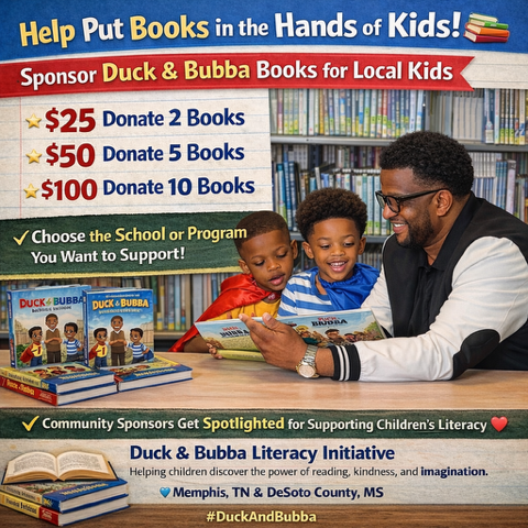 Duck & Bubba is more than a children’s book series — it’s a literacy movement rooted in kindness, teamwork, and confidence. Donations help place books in schools, support reading programs, and create meaningful literacy experiences for children and families.